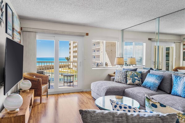 Experience unforgettable beachfront living in this beautifully appointed condo, offering stunning views of the Gulf waters and sandy beaches. Perfectly designed for up to 6 guests, Condo 317 features hardwood floors throughout the main living areas and tile in the kitchen and bathrooms, creating a warm and coastal ambiance.