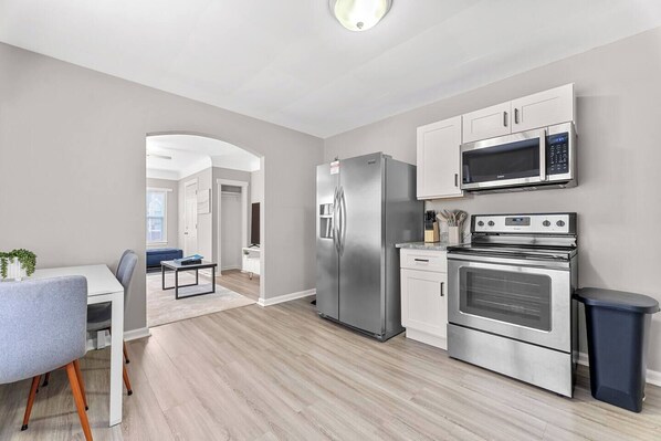 Welcome to our charming 1-bedroom, 1-bath apartment just steps from downtown Wyandotte! Enjoy a massive 65` 4K Roku TV, a spacious kitchen perfect for cooking, and a cozy queen bed fit for royalty. Stay connected with fast WiFi—ideal for work or streaming. Perfect for solo travelers or couples, this apartment offers comfort and convenience within walking distance of local events, shops, and Wyandotte’s vibrant dining scene.