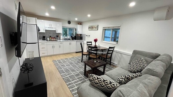 All guest rooms at Cozy 2BR Garden Suite w/ Private Yard & EV Charger near Grouse Mountain & Trails offer amenities, such as free WiFi, desk chairs and dining tables.