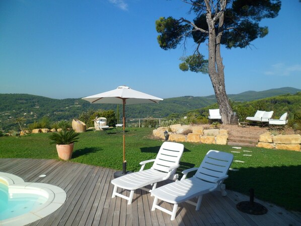 Quel plaisir d'avoir découvert en vrai cette belle demeure, des photos sur Abritel, la réalité rend encore mieux... Une vue à couper le souffle sur le massif des Maures, la piscine est particulièrement bien entretenue entourée d'une végétation qui impose la quiétude sous les pins... Malgré la chaleur, la climatisation joue parfaitement son rôle et permet de profiter de toutes les pièces au frais. Lumineuse, grand espace de vie, chambres bien insonorisées et cerise sur le gâteau, un studio indépendant accolé à la maison, idéal pour un ado ou couple... Maison proche des sites à visiter. Mention spéciale pour notre hôte Bernadette (accueillante, généreuse, discrète... De bons conseils sur les lieux incontournables...)