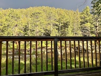 Rustic Charm offers a serene retreat by the Big Thompson River, where you can unwind in your private hot tub on the balcony or enjoy full access to the river. The unit features wooden vaulted ceilings, a cozy living area with gas stove fireplace and full kitchen.