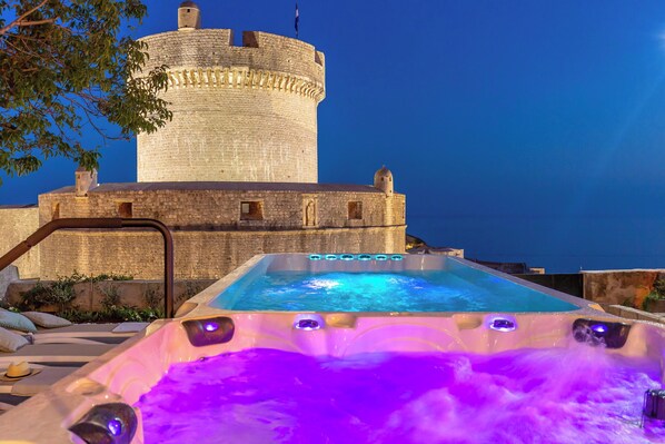 This is a completely renovated 3-bedrooms villa offering a remarkable view over the most famous Dubrovnik Fortress called Minceta. The villa features a spacious terrace with a swim spa pool equipped with Jacuzzi - hot hydro massage tub for 6 persons ( up to 37 c/...98.6f) and counter current infinity swimming system for 2 persons ( up to 3o c/.86...f). All villa guests can enjoy in it any time during the whole year and also relax in the garden.