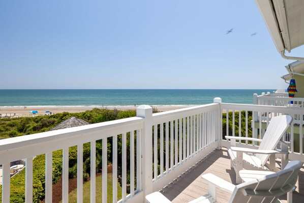 Master Bedroom #1 has a King Bed, a Full Bath and an oceanfront balcony. Bedroom #2 has a Queen Bed and a small balcony. Bedroom #3 has a Queen Bed and a small balcony. Bedrooms #2 and #3 share a Full Bath. Central Heat & Air. Washer/Dryer. Ceiling Fans. Water Softener.