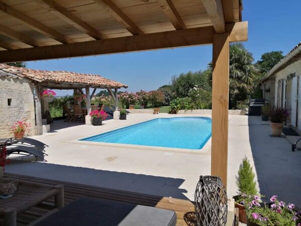 Outdoor pool - Beautifully restored Charentaise house with private pool and stunning views (Expiremont)