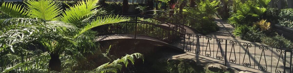 Walk amid tropical rainforests or arid displays dotted with cacti at this beautiful garden set within a collection of large glasshouses in a pretty city park.