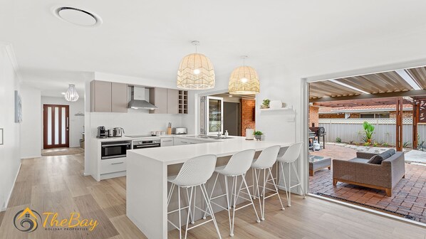 Waves on Whitesands, a beautifully renovated beach-inspired holiday home in Fingal Bay, offers the perfect blend of relaxation and entertainment. Unwind with Smart TV's and Wi-Fi or enjoy the outdoors with an undercover entertaining area, fire pit, and multiple relaxing zones. Take a short 6-minute walk to Fingal Bay Beach or refresh yourself at the outdoor shower after a day out.