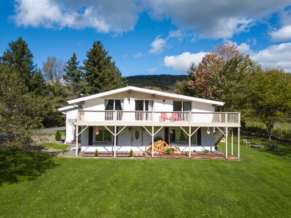 This fully renovated chalet is close to nearby Margaretville, Arkville and Phoenicia. Only 7 miles to Belleayre Ski Resort. Beautiful secluded property for peace and quiet with gorgeous pond and mountain views. This place is good for couples, skiers, family and friend getaways and families with kids. Also close to trails.