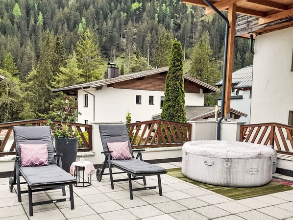 Flirsch 12 km from St. Anton: Large hillside complex, 3 storeys. In the district of Siedlung, 500 m from the centre, 100 m from the edge of the forest. For shared use: table tennis, terrace, barbecue. Private: patio. In the house: storage room for bicycles, storage room for skis, central heating system. Parking (for 2 cars) at the house. Supermarket 1.5 km, restaurant 500 m, bakery 500 m, bus stop 100 m, railway station "St. Anton" 13 km, outdoor swimming pool 13 km, indoor swimming pool 8 km. Walking paths from the house 100 m, skisport facilities 12 km, ski bus stop 100 m, ski school 12 km, cross country ski track 2 km, children's playground 300 m. Well-known ski regions can easily be reached: St. Anton am Arlberg 12 km, Ischgl 33 km. Hiking paths: Bergwald 500 m. Please note: ski bus (free of charge). Free ski bus service to the ski region St. Anton. Please note: the owner lives in the same residence.