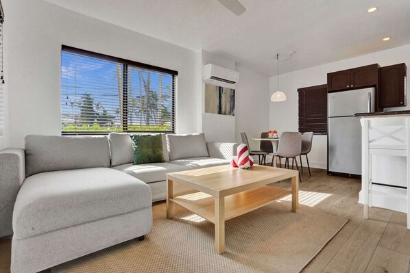 Guests have access to the front yard ( share space), 1 free parking on front of the building, private entrance with 2 chairs and a coffee table, free beach access two steps of the building and pool access to our other location Waves On Desoto cross the street.