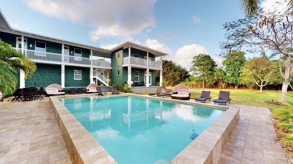 Outdoor - A large, heated pool with a paved outdoor patio, complemented by plenty of seating, good lighting, a charcoal grill, and warm weather, transforms the outdoor living space into the perfect place to gather and unwind. Private balconies and 2,000 square feet of a wrap-around veranda offer unlimited opportunities to relax in the fresh air.