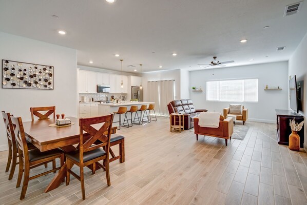 Centrally located between local hospitals, this stylish home offers a haven of comfort with memory foam beds and Egyptian cotton sheets. Unwind in front of the electric fireplace or challenge yourself to board games after exploring the nearby Clovis Bike Trail. With 1 GIG WiFi and Smart TVs throughout, you'll feel right at home.