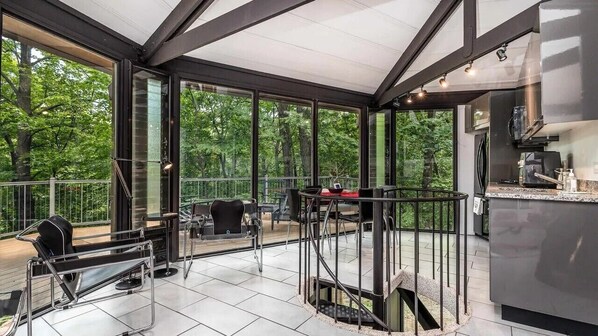 Unique octagon house in woods- Hot tub, pool, fireplace, firepit