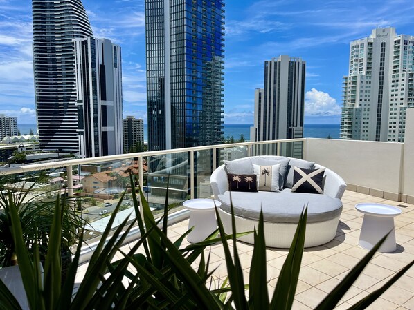 The Sky Terrace is totally private, offers breath taking skyline and ocean panoramas, and provides the ultimate holiday entertainment space.