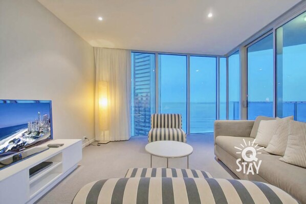 On level 24 of the H-residencies, this beautiful two-bedroom apartment boasts elegant and modern furniture with incredible ocean, river, and hinterland views. Close to shops, cafes and beach you will want for nothing when staying here. With access to a fitness center, outdoor pool, indoor pool as well as an Eforea Spa you can unwind in style.