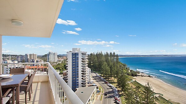 Balcony with stunning views looking onto Rainbow Bay, Snapper Rocks and the Superbank and also towards the Tweed River and Hinterland