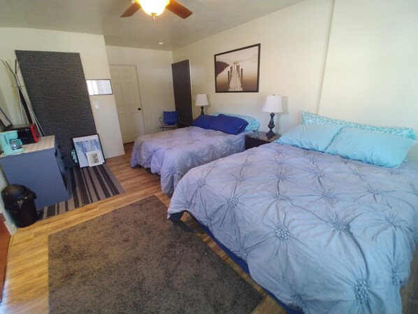 This is a master bedroom suite with private entrance attached to our home. It is partitioned from the rest of the house by a door which locks on both the guests' side and our side of the door. It is configured like a comfortable hotel room but with your private parking area right outside the entry door. We also list a free standing cabin on the same property for vacation rental, if you are traveling with a larger group you may want to rent both this space and the cabin! (Please check our other listing for availability)