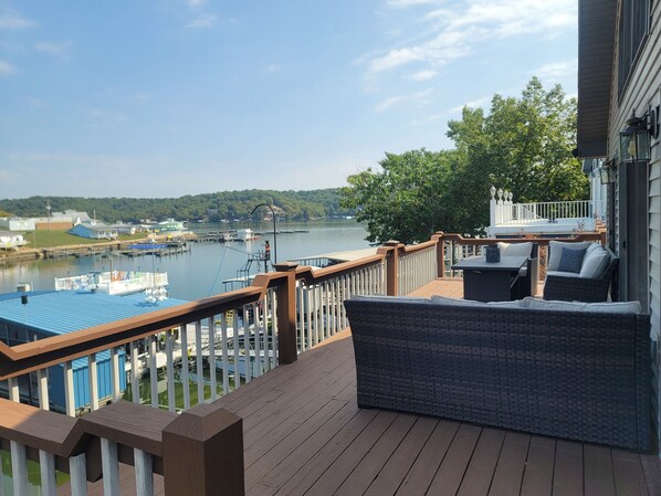 The decks lead straight to the dock, where you will have access to use the kayak and Lilly Pad. Our no-wake cove makes swimming and relaxing safe and easy for children. Electric boat slip available, message host for more information.