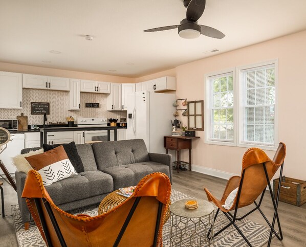 Located within walking distance to Greensboro Coliseum, GAC, White Oak and Spring Garden Street, this charming 1935 cottage offers a cozy retreat. With three bedrooms featuring premium Novaform mattresses and comfy bedding plus a fully fenced backyard with charcoal grill and bistro furniture for outdoor relaxation.