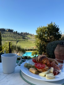 Borgo Del Cabreo in Chianti Classico offers a hearty breakfast buffet and daily manager's reception. Enjoy local wines at the winery, relax on the sun-filled terrace, or visit nearby vineyards. Helpful staff and high-speed WiFi enhance this authentic Italian experience.