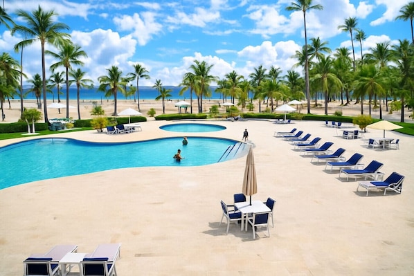Welcome to your perfect Caribbean escape! This spacious 2-bedroom, 2-bath apartment offers comfort, style, and unbeatable location—with an ample private terrace right in front of the pool and just a few steps to the beach. Ideal for families, couples, friends, and long-term stays.