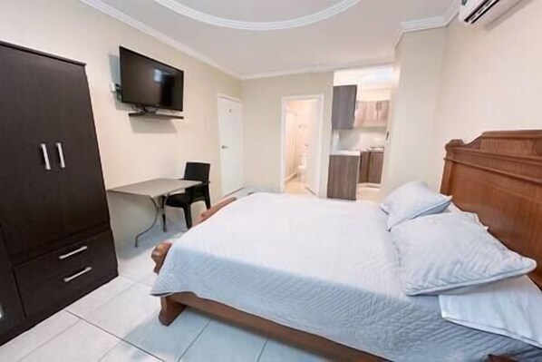 Strategically located in front of José Joaquín de Olmedo International Airport, this cozy suite offers a comfortable and convenient stay. With free Internet access, parking and airport transportation available, guests can unwind in the seating area or rest comfortably on the double bed.