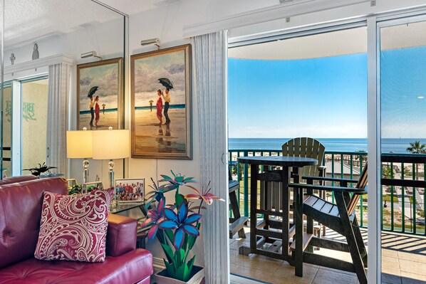 The condo has a beautiful view of the beach. We enjoyed the pools, especially the indoor pool. It was a relaxing trip.