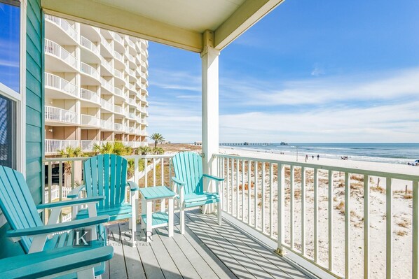 Welcome Our Point of View #1, a spacious, beach-front Gulf Shores vacation home located directly on the beach in the heart of Gulf Shores. Professionally managed by Kaiser Vacation Rentals, Our Point of View #1 welcomes you with breathtaking views of the Gulf of Mexico complete with the sounds of soothing waves and a direct walkway to the beach.