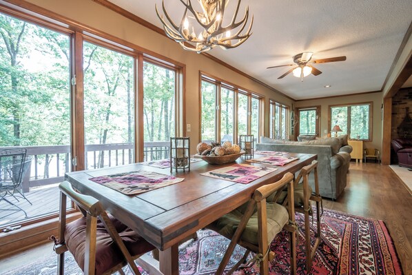 Safety is a priority, and we provide life jackets for all ages to ensure a secure and enjoyable experience on the water. Whether you're indulging in swimming, rafting up to the dock, or simply enjoying the quietude, our location in a quiet area of the lake serves as the perfect backdrop for your vacation.