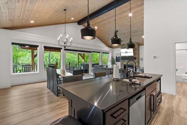 Race inside to find a fully equipped kitchen, perfect for whipping up your latest catch or letting the younger ones roll out cookie dough on the island! The dining table sets the scene for a delicious meal or memorable card game! Cozy up in the living room where you can enjoy the beautiful views of Lake Taneycomo or stream your favorite movie by the fireplace. Head out for some fresh air on the patio where you can grill up a feast or take a dip in your private hot tub and let the soothing sounds of water serenade you. Make sure to sneak away to the shoresides of Lake Taneycomo, you may even catch the next record breaking trout! Looking for the coziest place to turn in for the evening? This beautiful home offers two king bedrooms with ensuite bathrooms and an additional bunk room, which is sure to be a hit with the younger ones!