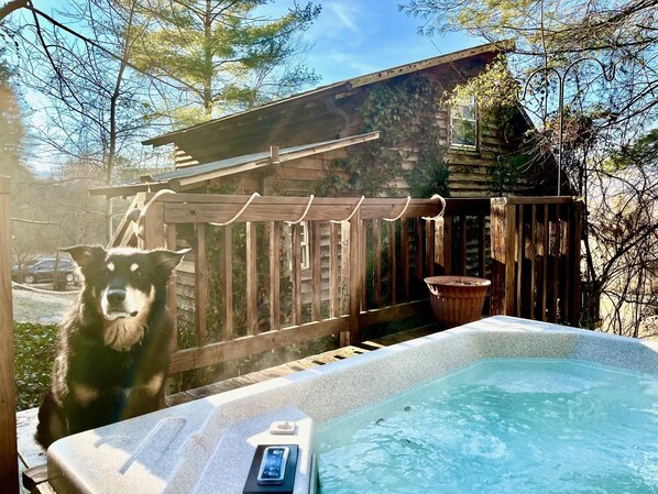 Enjoy an outdoor, private hot tub filled with only fresh, hot and natural mineral water. We fill the tub with only fresh mineral water for your arrival, setting the temp to 100 degrees. You may adjust the temp up or down at your leisure.