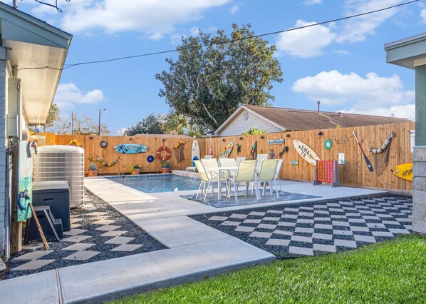This spacious and family-friendly home, with a backyard POOL, is conveniently located on one of the best streets in Kemah! Enjoy being just a stone's throw away from the famous Boardwalk and all its attractions, while also being somewhere quiet, relaxing and comfortable for your stay. This roomy home is wheelchair friendly, outfitted with accessible bathrooms, and sits on an almost 1/2 acre lot. WiFi is available and the neighborhood has strict noise ordinances to ensure peaceful nights. Entire house is available, excluding the garage. Minimum age of 25 required to book; no Saturday/holiday check ins or out allowed. Uber, taxi, and bicycles are all available for transportation. Mail is not accepted at this address. Enjoy some rest and relaxation with your family here at this convenient and accessible getaway!