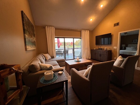 Pondfront 2 Bedroom & 2 Bathroom Condo with Huge Deck + Golf Cart at Sawmill Creek Resort.