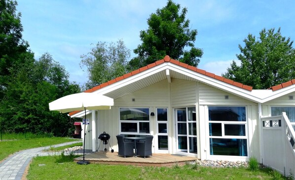 Ideal for dog owners: Large, fenced property invites you to play, relax and grill. Take advantage of hours of sunshine in your beach chair at the house in a small, elevated area. Children's travel cot and high chair are available free of charge for our little guests. Free WiFi connection available.