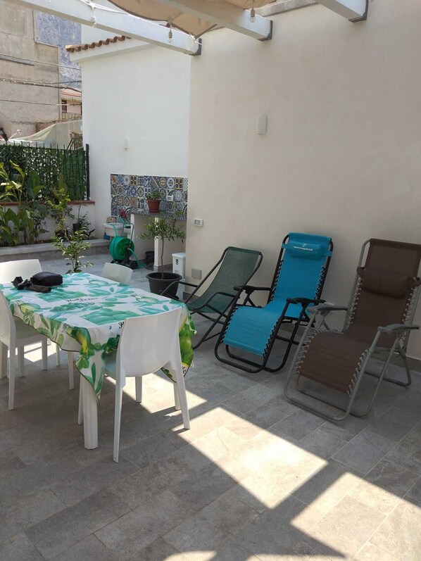 Self-contained apartment with outdoor patio within walking distance of the sea and downtown.