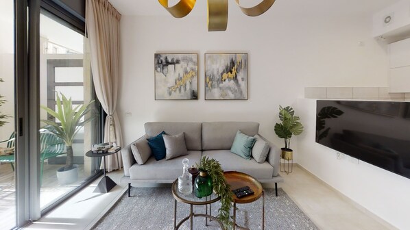 Experience the vibrant energy of Jerusalem at LINCOLN RESIDENCES, where modern style meets luxurious comfort. This 2-bedroom apartment features a balcony with new furniture, flat-panel TVs with great cable options, and a fully equipped kitchen. Enjoy excellent ventilation and soundproofing in this bright retreat.