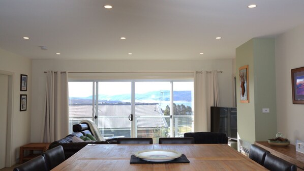 Head upstairs, and you’ll land in an airy open-plan lounge, dining, and kitchen space, all soaked in natural light. Step out onto the balcony and soak in the magic, lake views that honestly stop you in your tracks.