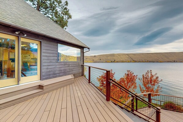 Enjoy the private seasonal dock, multiple seating areas on the expansive deck, and the beautiful, mature landscaping that surrounds the home. A seasonal propane BBQ is available for outdoor dining.