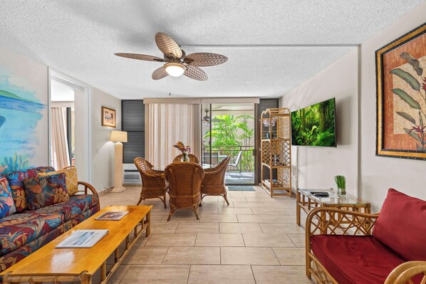 The condo features a well-equipped kitchen, inviting living space, and all the comforts you need for a relaxing Hawaiian getaway. Whether you want to explore Kona’s vibrant town or simply unwind by the water, this location puts you right in the heart of it all.