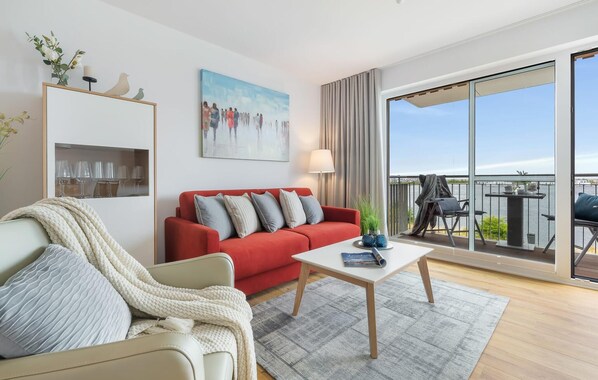 The extensively equipped open-plan kitchen leaves nothing to be desired. Here you can conjure up delicious holiday meals. The balcony invites you to enjoy a barbecue evening with a view of the water.