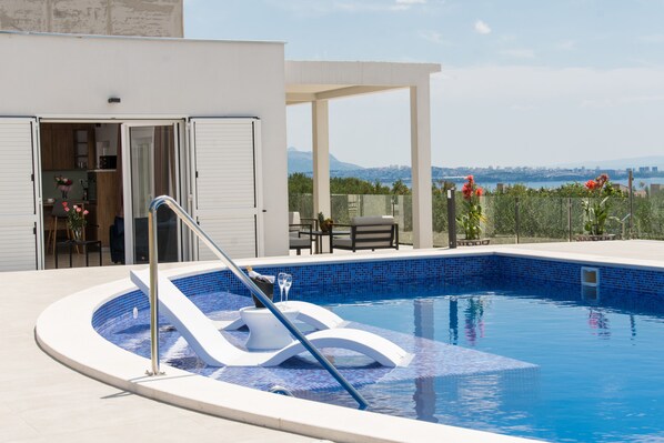 Escape to Villa Olive`s secret, a secluded retreat in Kastel Luksic. Enjoy the serene views of the garden from your private balcony or unwind by the pool.