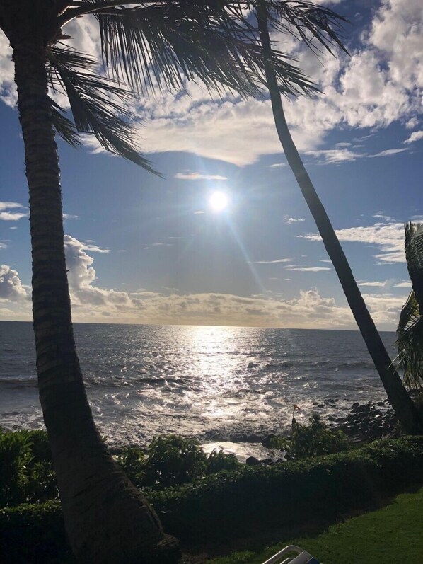 Your spacious lanai is just steps away from the pool and grilling area, and a lava rock fountain graces the front entry. The condo is directly across the street from one of Maui's finest white-sand beaches. Kamaole I/Charlie Young Beach offers spectacular views as you swim, snorkel, sunbathe, surf, or just stroll along the shoreline.