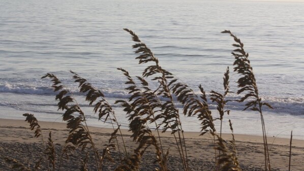 Sitting just 100 yds from the beach, Sea Breezes North is inviting and comfortable the minute you walk through the door. Each side of the duplex has 2 bedrooms, 1 bath, and a living/dining/kitchen area. A unique sliding wall allows for rental of both sides with a common dining area, (when the wall is open). Each kitchen is fully equipped. There is cable TV, DVD, and wifi, a private deck with grill and heavenly outside showers on each side. The Town of Southern Shores was founded on volunteerism and continues to be cared for by a strong team of members of the community. It is a community committed to preserving a safe, family friendly beach and sound area. Beach and sound access is limited to property owners and renters, so over-crowding is not an issue. Access to the beach from Sea Breezes Cottage is a short 100 yard walk. Although across the street from the beach access path, the cottage is in a strictly enforced 25 mph zone of Ocean Blvd, making crossing the street easy and safe. The North side of the cottage is identical to the South side unit except in bedding. On this side, there is one bedroom that has bunk beds plus an additional twin. The second bedroom has a king size bed. There is also a queen size sleep sofa in the living area.