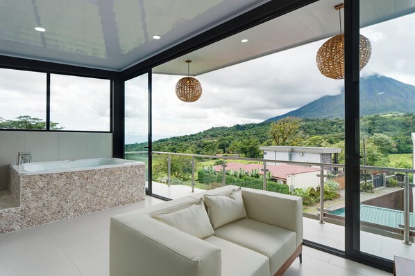 - Epic volcano views from your private balcony and hot tub