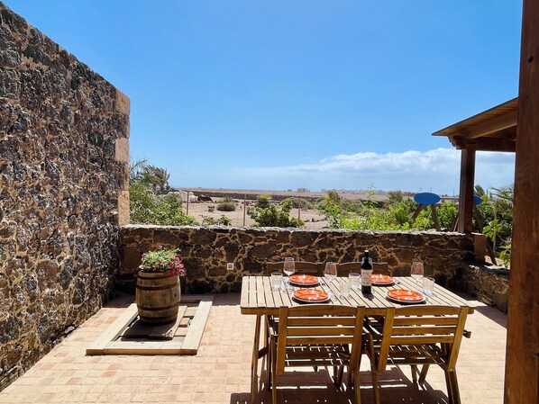 Outdoor dining - "An oasis by the sea" Canarian finca for nature, watersports & animal lovers (El Roque / El Cotillo)