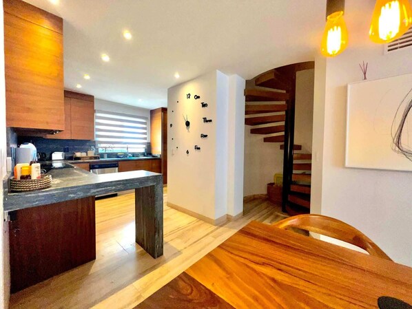 Microwave, oven, stovetop, coffee/tea maker - Vista Coral PH Sunset Rooftop Marina & Ocean Views (La Paz)