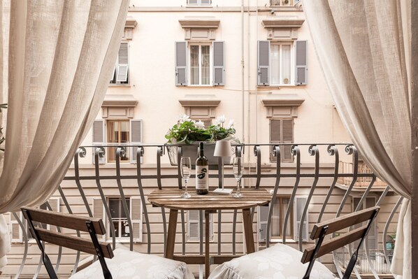 Inserted in an art nouveau building in the heart of the historic center of La Spezia, Suite Royal is a loft sought after down to the smallest detail: parquet, stucco, boiserie, friezes, silver, lace, embroidery and tasteful furniture, every detail is the result of careful research to give the guest who stays there a sense of refinement and refinement. The Suite located on the second floor with lift is equipped with a cooking area with induction hobs, fridge and everything you need to cook from pots, dishes, glasses, coffee machine, kettle, etc. a dining corner, a large space with a double bed, bathroom with shower and a balcony equipped for romantic breakfasts or candlelit dinners. The structure, due to its central location, allows, in 10 minutes on foot from the station and 15 minutes from the ferry departures, to visit all the resorts of the Golfo dei Poeti (the Cinque Terre, Portovenere, Lerici, Tellaro) and the Gulf del Tigullio (Sestri Levante, Chiavari, Portofino, Camogli, Rapallo, Santa Margherita) without using the car, it is also close to the bus stop, which leads to sightseeing in the Cinque Terre. My guests will also have free use of two bicycles to get around the city center comfortably and easily reach the nearest tourist resorts of the Gulf of Poets