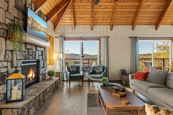 High above in the San Bernardino Mountains lies our multi-story pet friendly (pet fees) 4-bed cabin – a hidden gem with mesmerizing views of the Lake that will capture your heart the moment you arrive. Lake Access pass included.