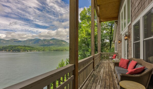 A highlight of Brigadoon is the Phenomenal View! Lots of outdoor seating and gathering space. This home has everything you could ever want of a lakefront/mountain retreat.
