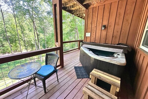 My family and I had a wonderful, relaxing stay at this beautiful cabin! We even had the honor of seeing a baby bear on the property a couple of times! The kids were thrilled! Secluded and peaceful with plenty of space to spread out and decks to enjoy the babbling creek, outdoor swing and hot tub this place exceeded our expectations! Clean and updated with fun amenities (pools, lazy river, sports courts and put put golf very close by) made this trip one that we so enjoyed and will always remember.