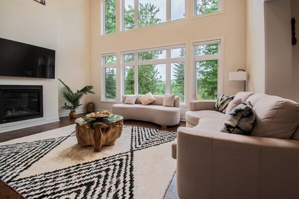 With four spacious bedrooms—including a stunning main-floor primary suite with a seating area and luxurious 4-piece ensuite—Northern Lights Chalet provides comfort and style for families and groups.